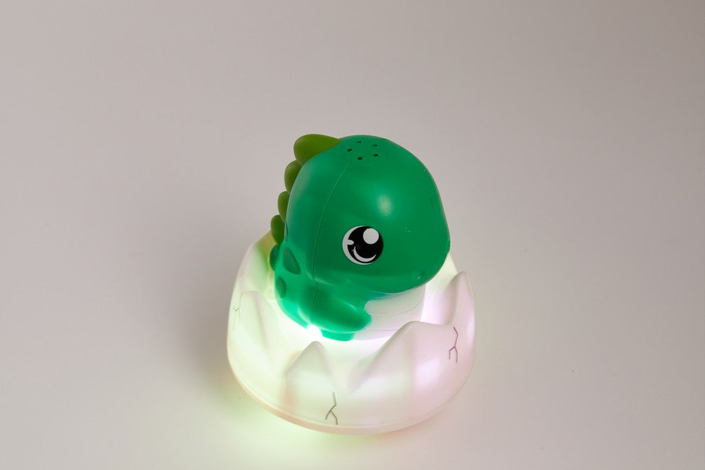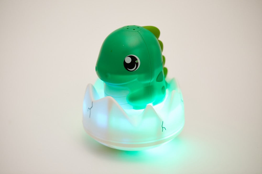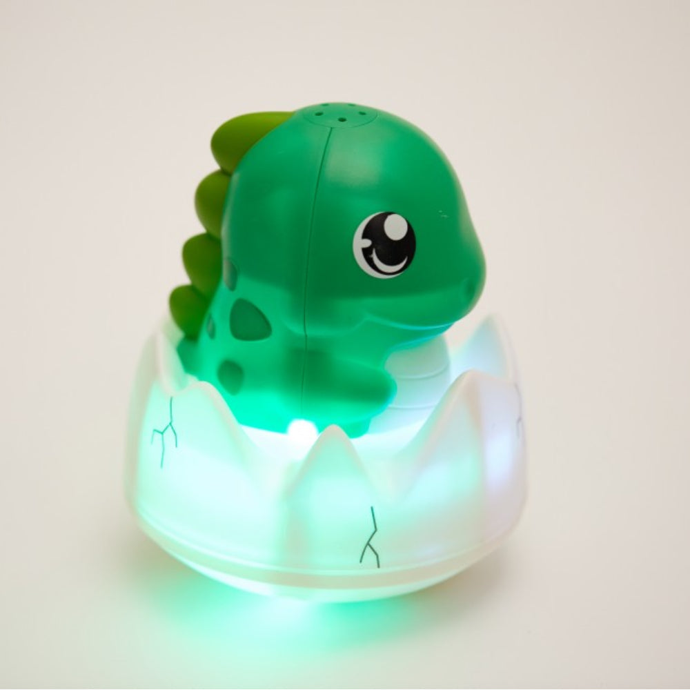 Regardez les jouets de bain dinosaures s'illuminer d'une lueur verte captivante, créant une atmosphère immersive et enchanteresse dans la baignoire.